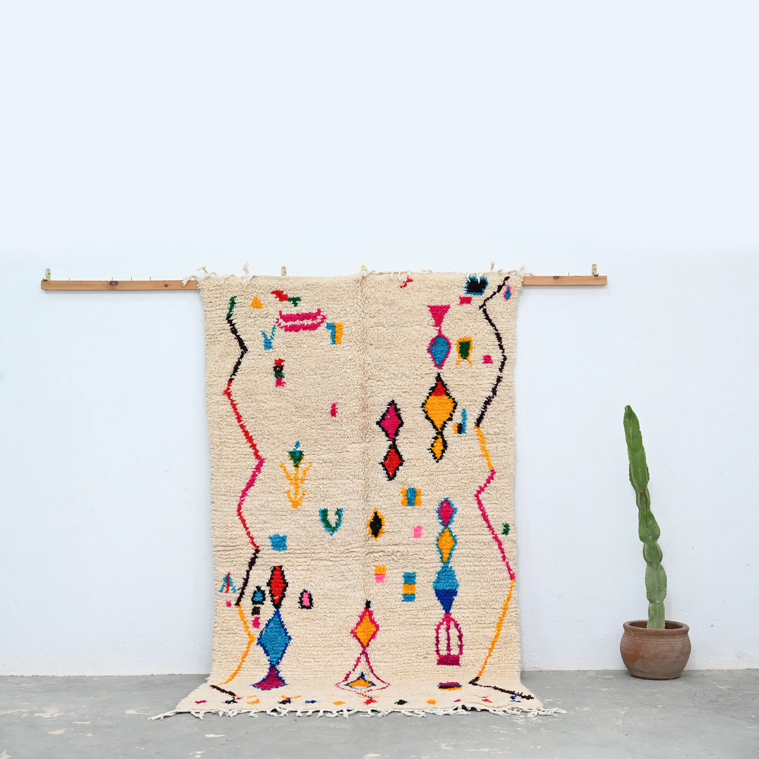 $790.00Découvrez notre splendide tapis coloré, une véritable œuvre d'art artisanale. Chaque tapis est confectionné avec passion à la main dans notre propre coopérative Baldi Chic, située au cœur des majestueuses montagnes de l'Atlas au Maroc. Fabriqué à partir de laine 100 % naturelle de brebis locales, ce tapis incarne la beauté de la nature. Les couleurs, toutes naturelles, reflètent la richesse du patrimoine culturel marocain. Chaque fil est tissé avec soin pour créer une palette de couleurs vibrantes qui illumineront votre intérieur. Notre tapis coloré est bien plus qu'un simple objet de décoration, c'est une expression de l'artisanat traditionnel marocain et de la créativité de nos artisans. Offrez-vous une pièce unique, riche en couleurs et en authenticité, avec notre tapis fait main. -